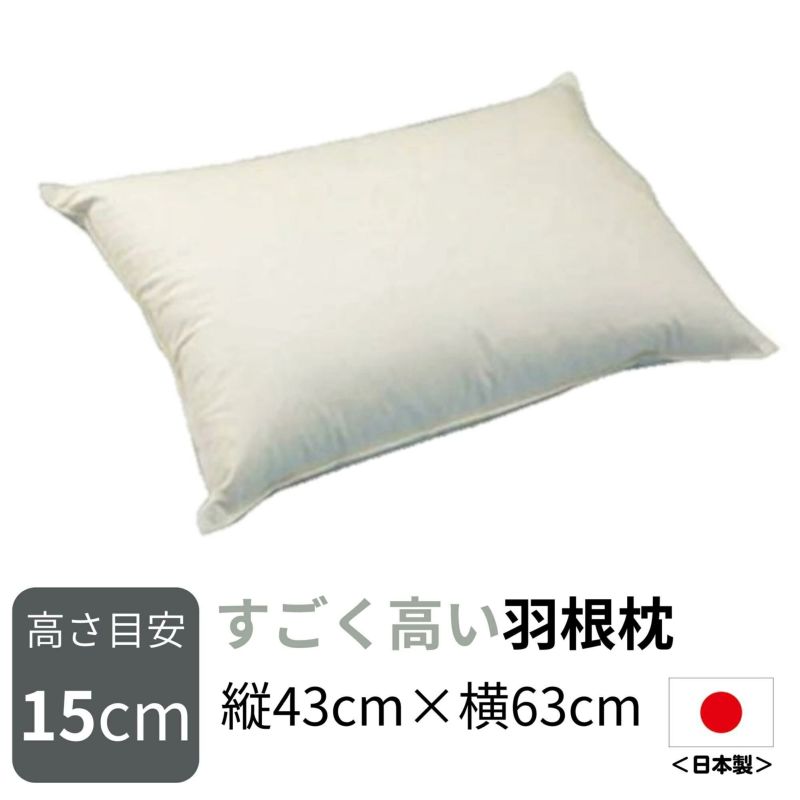 日本製羽根枕 高さが選べる すごく高い 羽根枕 (使用時の高さ:約15cm/硬め) サイズ:43×63cm