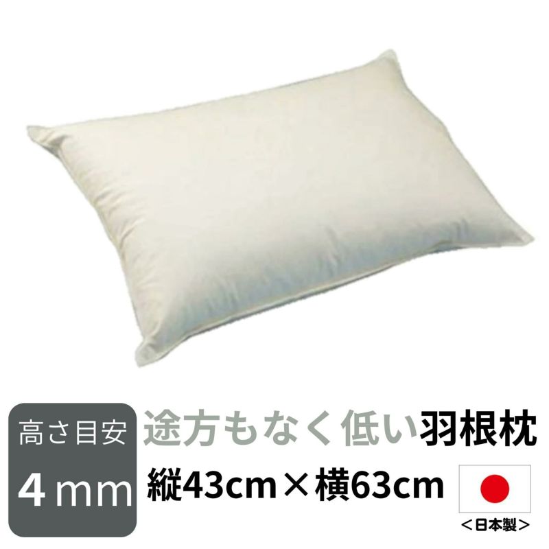 日本製羽根枕 高さが選べる 途方もなく低い羽根枕 (使用時の高さ:約0.4cm/柔らかめ) サイズ:43×63cm