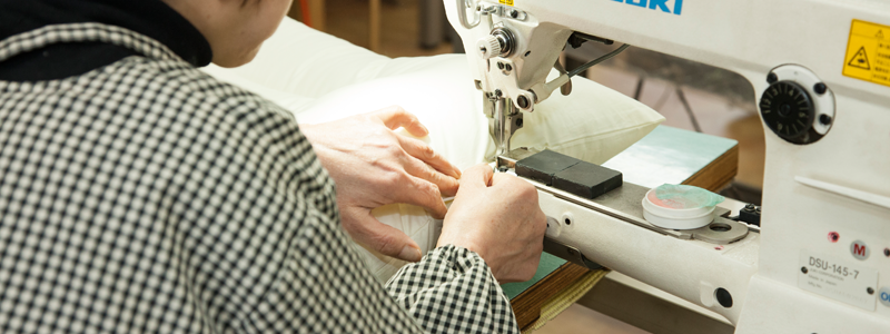 私たちの枕は、人の技術や経験を活かした手工業でつくります。