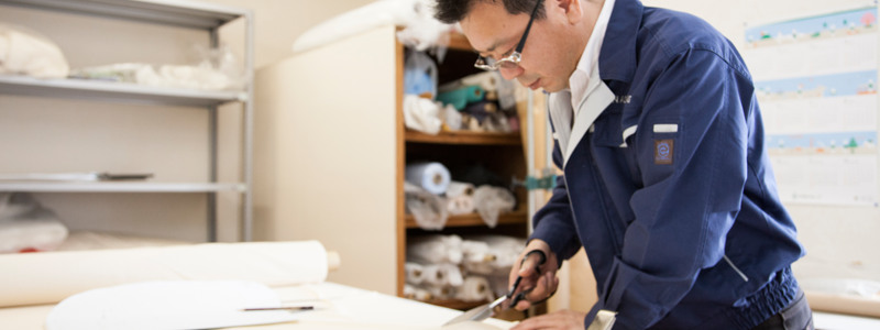 生地、素材、縫製、製品、梱包まで、厳しい検品基準を設けてチェックを行い、お客様の手元にお届けします。