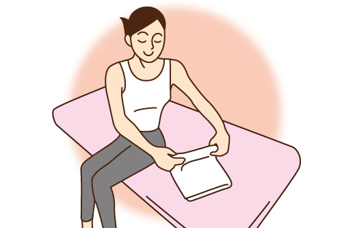 フェイスタオルを用意し、折りたたんで2cm程度の高さにします。