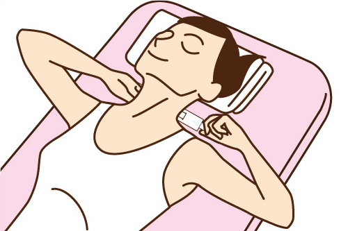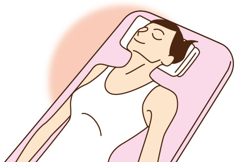 折りたたんだタオルをふとん(又はベッド)の後頭部に当たる箇所にセットし、仰向けになります。