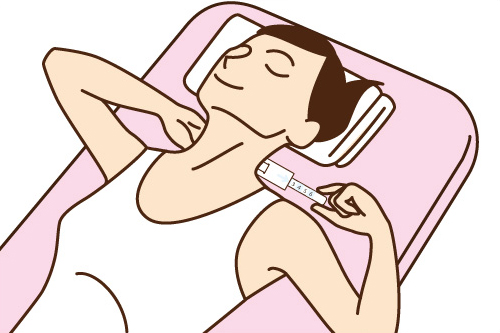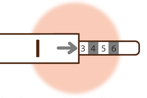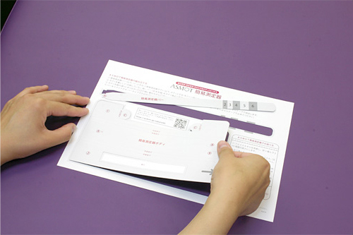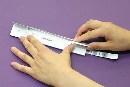 測定器を取り出し、矢印が示した範囲の数字がASMOTがお勧めするあなたの枕の高さの目安になります。