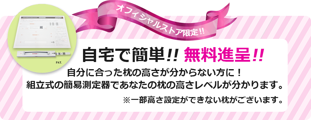 ※簡易測定器は枕の高さを選ぶ際の測定器です。それ以外の目的で使用しないでください。